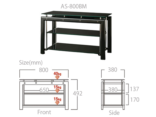 Maximum weight load(Top glass shelf): 40 kg