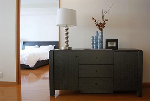 The subdued wenge color makes it look great when you decorate it with a photo or a vase.
