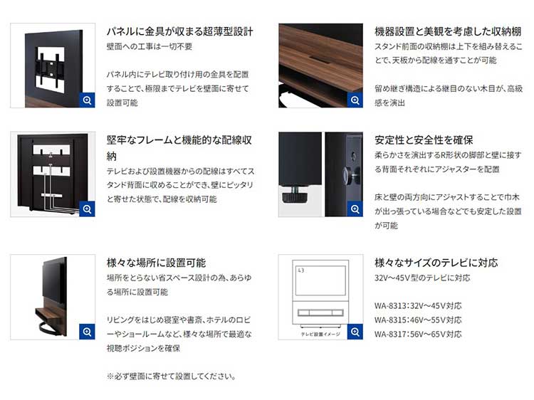 By arranging TV mounting brackets inside the panel, the TV can be installed as close to the wall as possible.