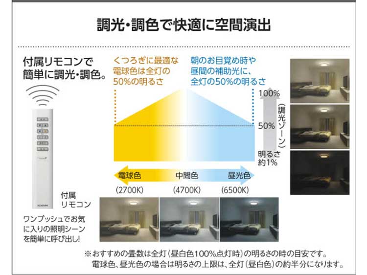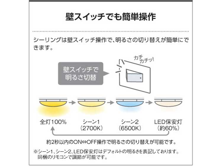 Wall light switch: All light → Scene 1→ Scene 2→ Night light
