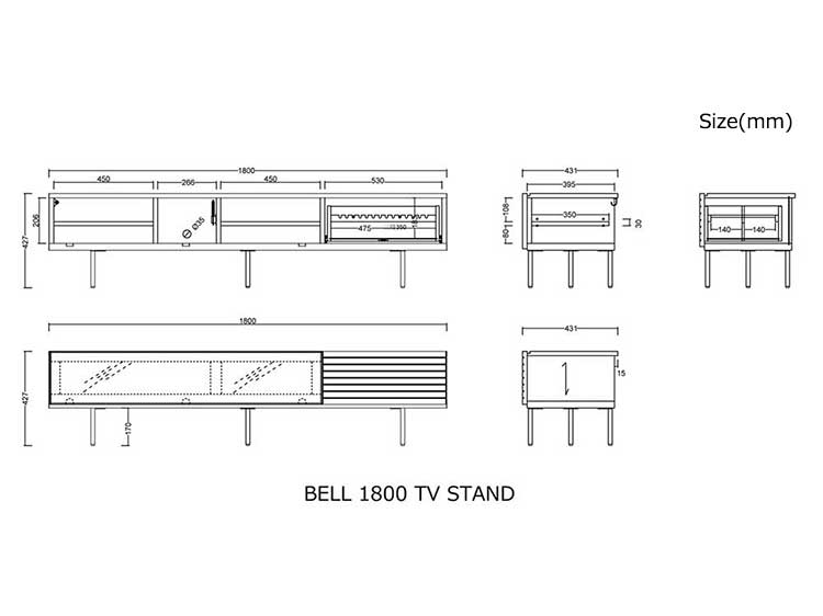Size: W180 x D43.1 x H43.9 cm