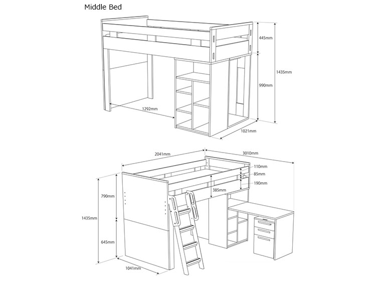 Middle Bed Frame Size: W104.2 x L204.1 x H143.5 cm