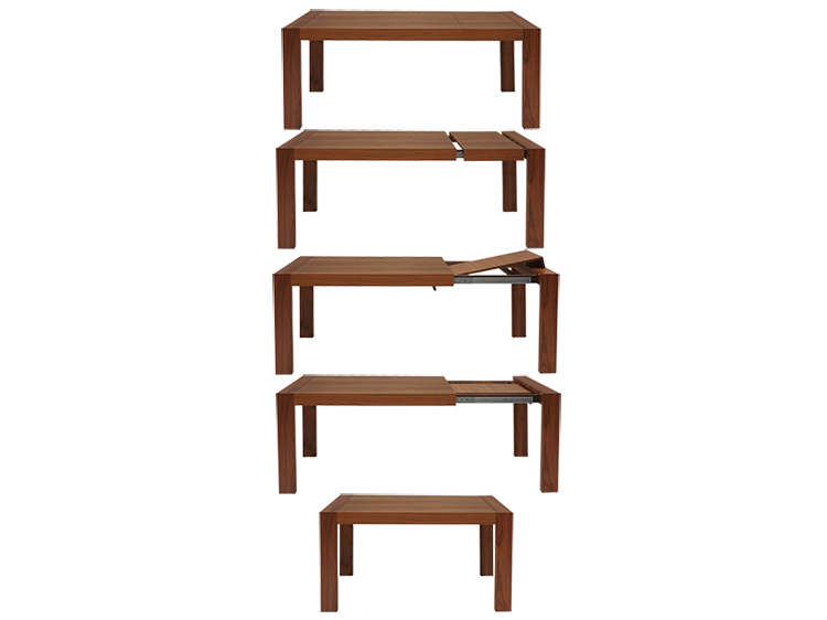 A flexible Cecilio extension dining table that can be extended by attaching an extension panel stored under the top plate.