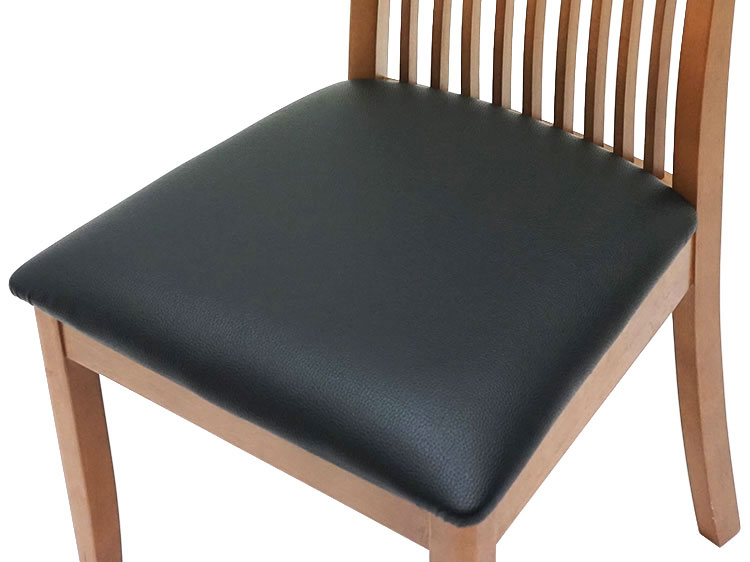 It has a simple walnut-colored wooden frame, and the seat is made of easy-to-maintain black PVC. The balance with the light design of the backrest makes it a complete product.