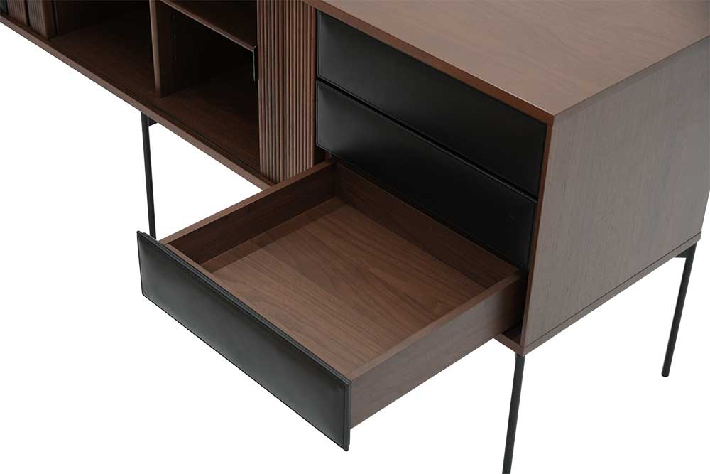 Enjoy the luxurious feel of the high-quality leather and the smooth movement of the drawers, which allows them to open and close smoothly, as well as the modern beauty of the thick leather, which brings out the delicate design of the bellows.