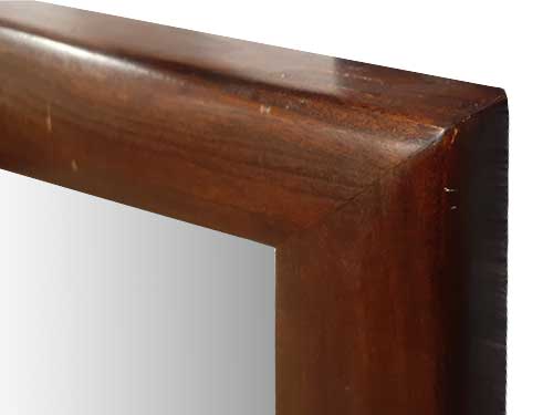 This is a unique mirror with a brown painted frame made of re-used wood, which gives each one a different touch.