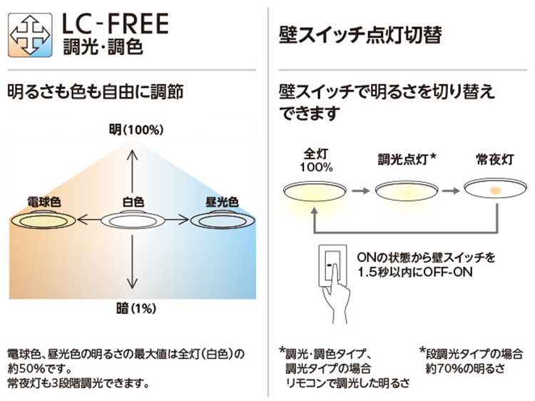 Wall switch: all lights → memory lighting (dimming / toning) → night light