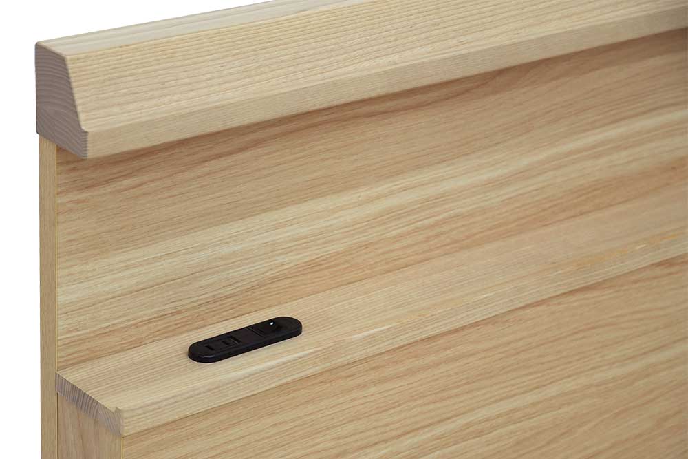 We used solid wood for the headboard frame top part and the shelf part.
